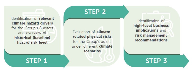 using a three-step qualitative physical risk assessment approach.