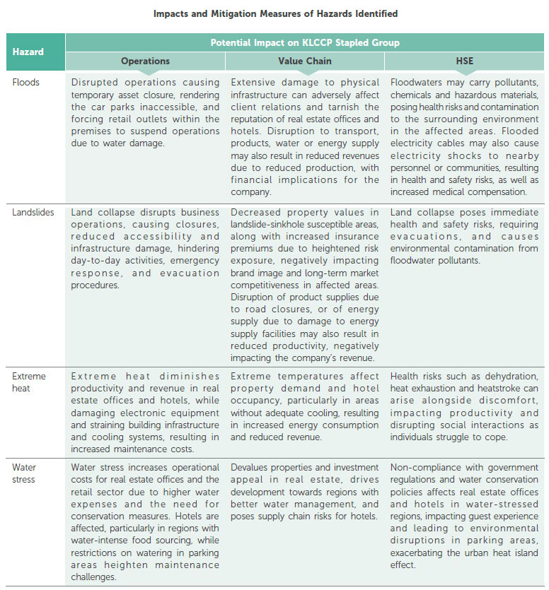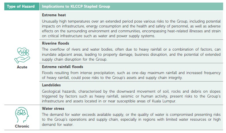 Acknowledging that physical climate change risks can have implications on our assets, KLCCP